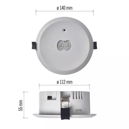 Vészvilágítás előlapi zöld LED-del, amely a teljes üzemidő alatt világít. A lámpát fixen történő beépítésre tervezték. Akkumulátor kapacitás: 1500 mAh LiFePo4, készenléti mód, töltési idő: 24 óra. Vészhelyzeti üzemidő: 3 óra.