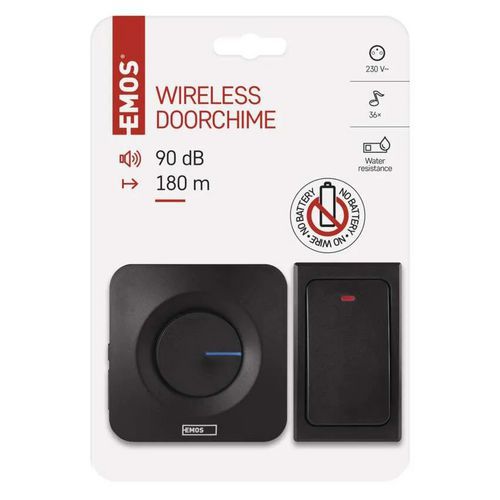 Emos P5729B vezeték nélküli csengő, elem nélküli, konnektoros, fekete