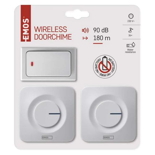 | Termék neve | Emos P5731 vezeték nélküli csengő, elem nélküli, konnektoros, 2 vevőegységgel |