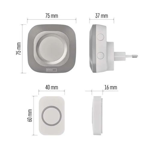 Emos P5733 vezeték nélküli csengő, konnektoros, ezüst színű Emos P5733 vezeték nélküli csengő, konnektoros, ezüst színű