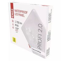 Keret nélküli, négyzet alakú LED lámpa álmennyezetbe. IP-védettséget igénylő helyiségekbe, például fürdőszobába, raktárakba vagy folyosóra. Védettségi szint: IP65.