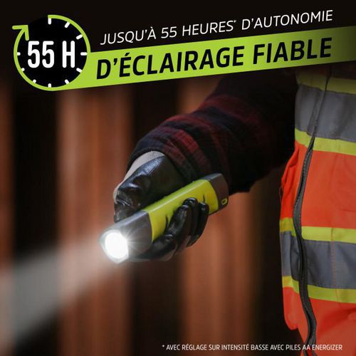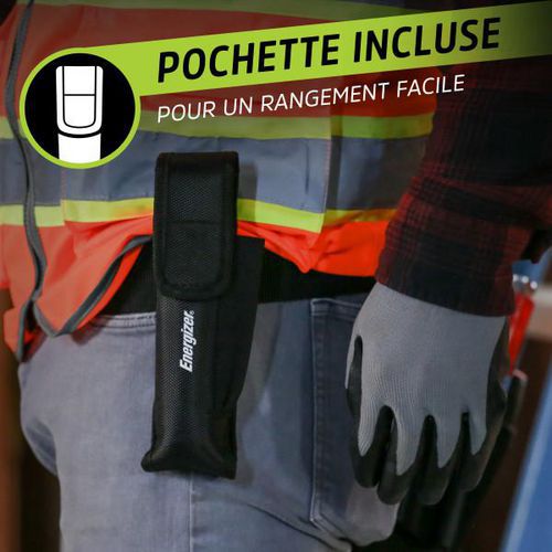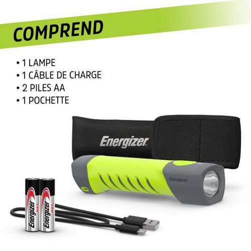 Energizer Pro hibrid zseblámpa tárolótokkal. 500 lumenes LED fényerő és magas CRI a tiszta és valósághű színekért (lítium-ion akkumulátorral). Hibrid tápegység: újratölthető vagy 2 db AA elemmel. Akár 55 óra akkumulátor-üzemidő alacsony energiafogyasztású módban (2 db AA elemmel). 4 világítási mód: erős, közepes, gyenge és stroboszkóp. Könnyen megfogható kialakítás: kényelmes, bordázott, csúszásgátló test és nyomógombos kapcsoló a könnyű használatért akár kesztyűben is. Mágneses zseblámpa a szabad kezekért munka közben. Okos kialakítás: tartalmaz egy tokot a zseblámpa, az elemek és a töltőkábel tárolására.