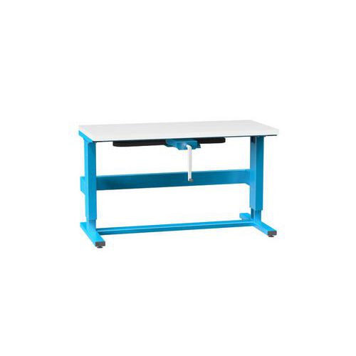 Tekerővel állítható ERGO asztal, 1500 x 700 x 790 (1100) mm, LAMINO, kék