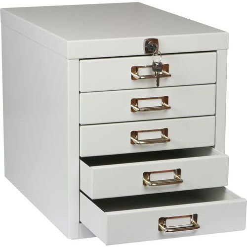 - Fém irattartó szekrények öt fiókkal és központi zárral különböző típusú dokumentumok tárolásához.