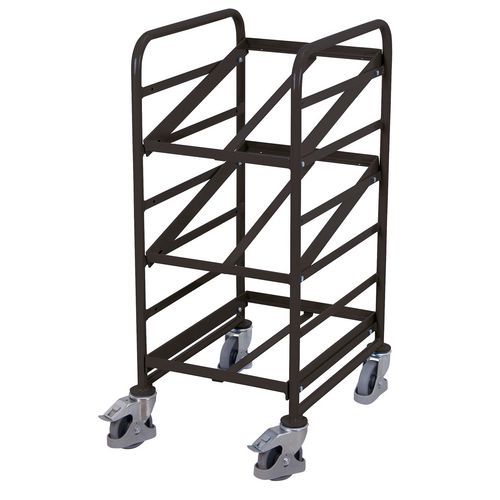 Három polccal ellátott kocsi 600 x 400 mm-es műanyag ládák elhelyezéséhez. A polcok 17° vagy 32°-ban dönthetők, élmagasság 27 mm, teherbírás 50 kg polconként. A keresztcsövek közötti távolság 125 mm. Furattávolság a polcok csavarozásához 150 mm. 4 forgókerék, melyek közül kettő fékkel van felszerelve. Szürke, nyommentes, termoplasztikus gumi kerekek műanyag felnin, precíziós golyóscsapágyakkal. Vázfelület-kezelés RAL skála szerinti porfestékkel. Ütés- és karcálló. Szerelés : Szereléshez Teherbírás (kg) : 200 kg