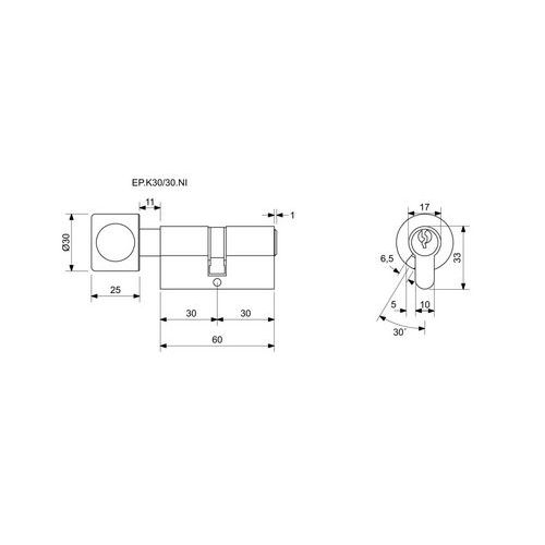 EuroPlus építőbetét golyóval, K30/30 mm, nikkel EuroPlus építőbetét golyóval, K30/30 mm, nikkel