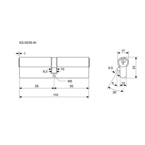 EuroSecure biztonsági zárbetét, 55/55 mm, nikkel EuroSecure biztonsági zárbetét, 55/55 mm, nikkel