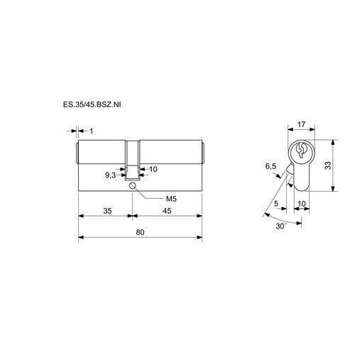 EuroSecure biztonsági zárbetétek behatoló zárral, 35 mm, nikkel
