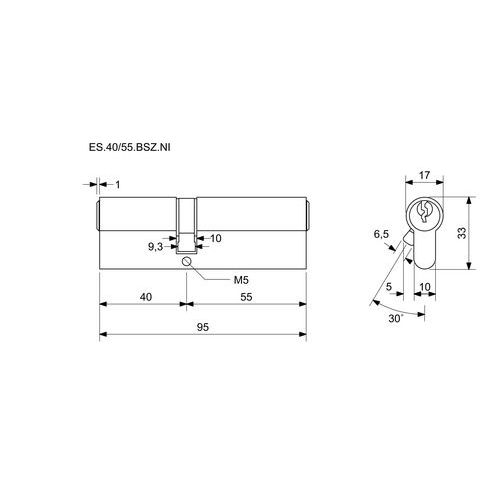 EuroSecure biztonsági zárbetétek behatoló zárral, 40 mm, nikkel