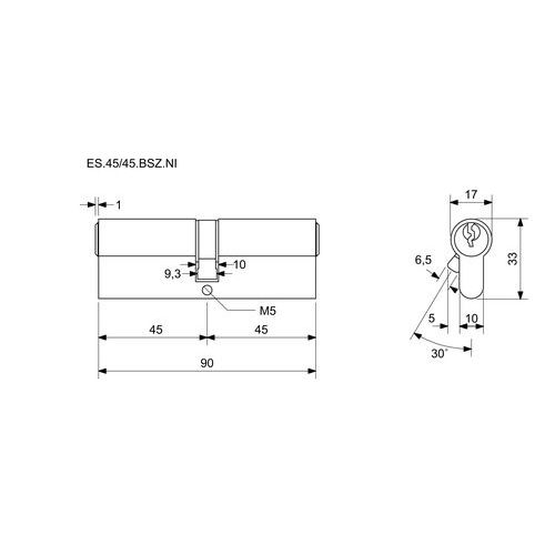 EuroSecure biztonsági zárbetétek behatoló zárral, 45 mm, nikkel