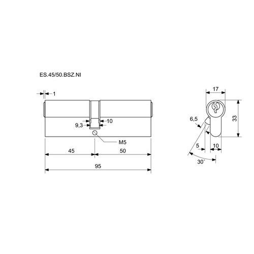 EuroSecure biztonsági zárbetétek behatoló zárral, 45 mm, nikkel