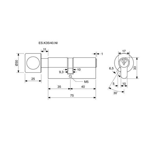 EuroSecure golyós biztonsági zárbetét, 35 mm, nikkel