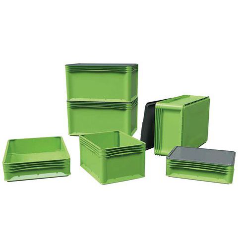 Az Eurowave termékcsalád minden napi feladat elvégzésére alkalmas. Ergonómikus és könnyen használható tartály. Robusz konténer a mindennapi használat során nagy stabilitást biztosító felépítésének köszönhetően. Beépített süllyesztett fogantyúk a kényelmes használat érdekében. Európai szabvány, egymásra rakható tartály vagy fedél nélkül Környezetbarát termékcsalád: csak újrahasznosított anyagok. Könnyebb tartály a gyártás során használt kevesebb műanyag miatt.