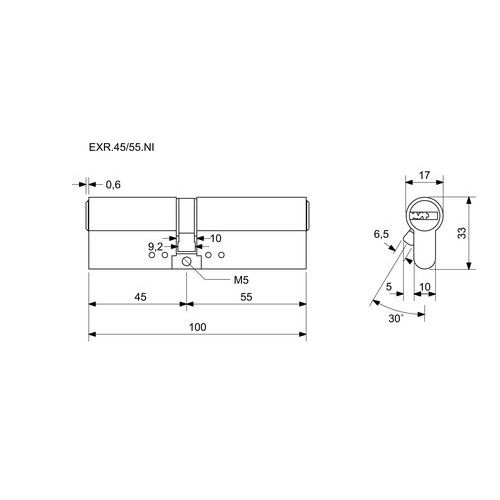 EuroXStar biztonsági zárbetét, 45/55 mm, nikkel EuroXStar biztonsági zárbetét, 45/55 mm, nikkel
