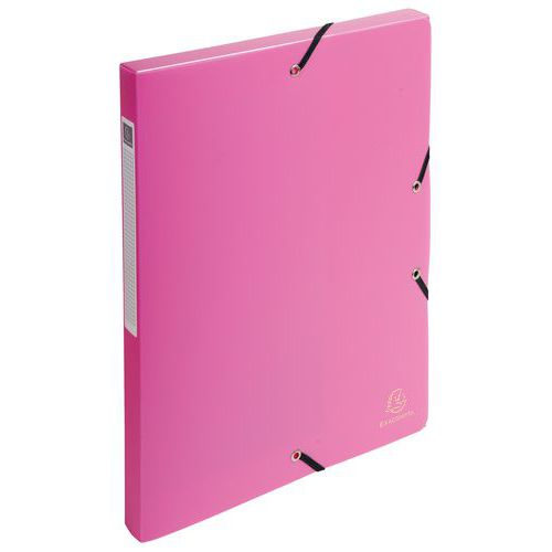 Merev, átlátszatlan műanyag mappák, amelyek védik a dokumentumokat és biztosítják azok bizalmas kezelését. Címke a gerincen a tartalom egyszerű azonosítása érdekében. Rögzítés rugalmas pánttal. A csomag 8 mappát tartalmaz. Különböző színek: kék, sötétkék, fekete, narancs, rózsaszín, piros, zöld, lila.