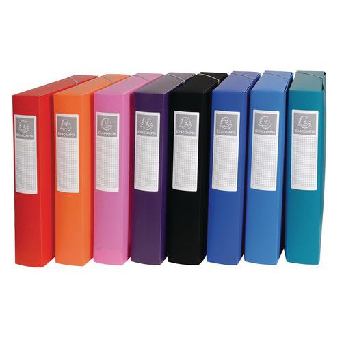 Merev, átlátszatlan műanyag mappák, amelyek védik a dokumentumokat és biztosítják azok bizalmas kezelését. Címke a gerincen a tartalom egyszerű azonosítása érdekében. Rögzítés rugalmas pánttal. A csomag 8 mappát tartalmaz. Különböző színek: kék, sötétkék, fekete, narancs, rózsaszín, piros, zöld, lila.