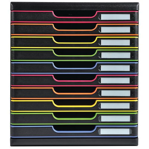 Stílusos és funkcionális fiókdobozok A4+-os dokumentumokhoz. Egymásba rakhatók és összekapcsolhatók (a MODULO A4 és A3 kombinálható). A fiókok könnyedén kicsúsztathatók, biztonsági ütközővel, kényelmes fogantyúval és címketartóval rendelkeznek. 5 vagy 10 fiókkal rendelhető. Szerelőanyaggal szállítjuk.