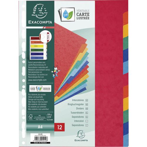 Színelválasztók Exacompta, 21 x 29,7 cm formátumhoz, osztások száma 12 Színelválasztók Exacompta, 21 x 29,7 cm formátumhoz, osztások száma 12