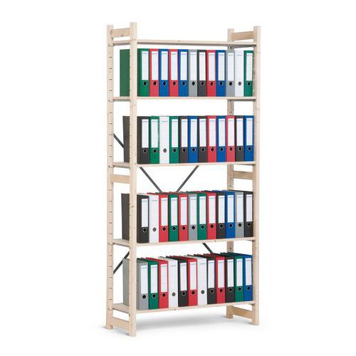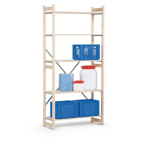 Fa polcállvány, alapkivitel, 209 x 97 x 30 - 50 cm, 5polccal, fenyő