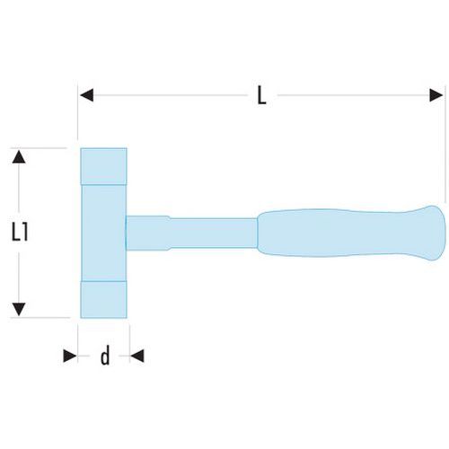 Üvegszálas nyél az erős és könnyű súlyért. Az acél test tartósságot és hosszú élettartamot biztosít. Speciális nejlon hegyek (Shore keménység D74 ±5), könnyen cserélhetők. Ergonomikus, PVC-bevonatú fogantyú a kényelmes fogásért. Fekete epoxi bevonat a korrózióvédelem és a vonzó megjelenés érdekében.