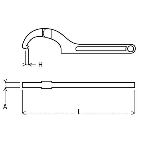 Csuklós horgas anyakulcs oldalsó bevágással. Minőségi és robusztus kialakítás rozsdamentes acélból.