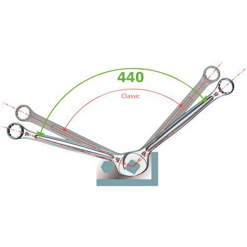OGV® profil a könnyebb meghúzáshoz és az anyák védelméhez. Vékony fejek a könnyű hozzáférésért. 30°-os fordított kombinációs kulcs. Ergonomikus fogantyú. Nagyobb kényelem: a keresztmetszetű fogantyú megduplázza a kéz támasztófelületét. Jobb hozzáférés a soros anyákhoz vagy a félig süllyesztett anyákhoz a fej 15°-os görbületének köszönhetően. Könnyebb meghúzás.