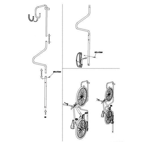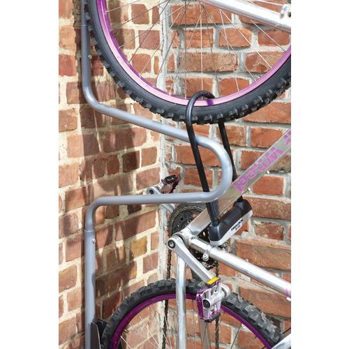 Falra szerelhető kerékpártartó gumírozott kampóval az első kerék védelmére. Könnyen közvetlenül a falra szerelhető a 4 rögzítési pontnak köszönhetően (csavarok nem tartozék). A kialakítás úgy készült, hogy a kerékpárt alul és a váz szintjén is felszereljük. Lehetőség van U-zár használatára a maximális védelem érdekében. Falra, mennyezetre vagy padlóra szerelhető.