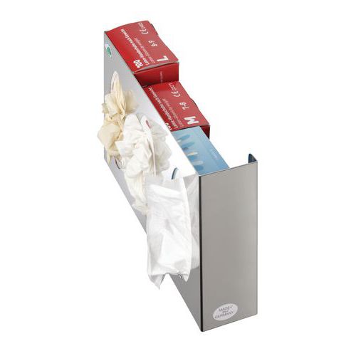 Egy-, dupla- vagy háromfali tartó kesztyűkhöz vagy papírzsebkendőkhöz. Kiváló minőségű matt szálcsiszolt rozsdamentes acélból készült.