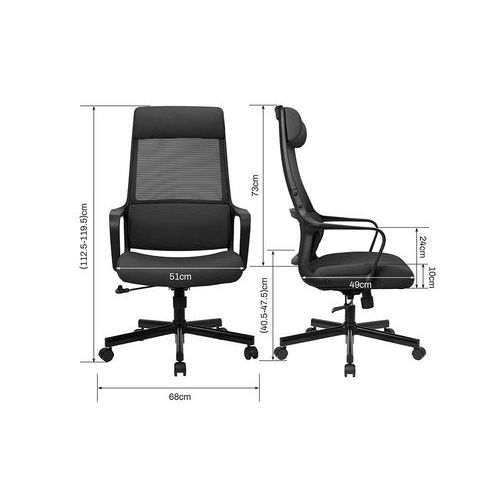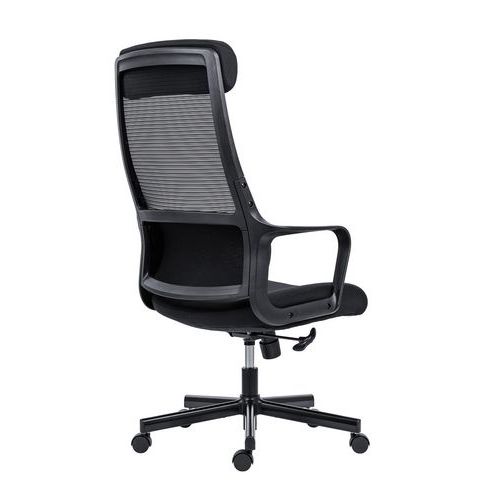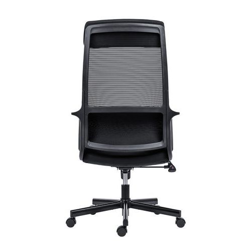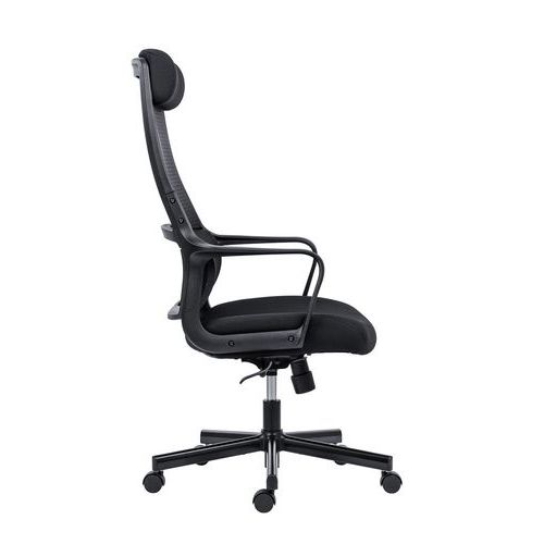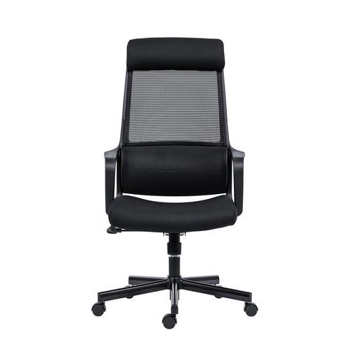 Faro irodai szék fekete hálós, légáteresztő, magas háttámlával. Puha, kényelmes, 10 cm vastag kárpitozott ülőlappal. 0-6 cm tartományban állítható magasságú fejtámlával. Állítható magasságú deréktámasszal. Alaphelyzetben rögzíthető hintamechanikával és állítható billentési ellentartással. A háttámla billentési szöge 90° és 115° között állítható. A szék 50 mm-es, kizárólag puha padlókhoz (pl. szőnyegekhez) alkalmas műanyag kerekekkel van felszerelve. Ötkarú acél fekete lábkereszt kellően széles alátámasztással a maximális stabilitás és oldaltartás érdekében. Alaptartozék a rögzített, beállítási lehetőségeket nélkülöző műanyag kartámasz. A karfa magassága a padlótól 64,5-71,5 cm. Otthoni irodába való, alkalmi számítógépes munkához ideális irodai szék. A szék teljes magassága 112,5-119,5 cm. A szövethuzat és a háló összetétele: 100% poliészter.