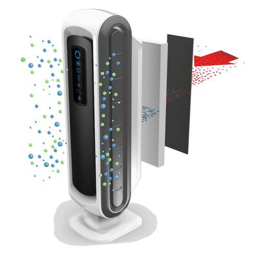 - Három sebességű csendes ventilátorral rendelkezik, alkalmas 24 órás használatra, a levegő szennyezettségét pedig kék, narancssárga és piros fény jelzi.