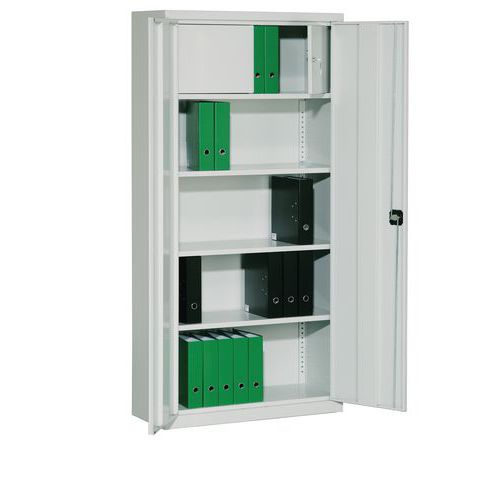 - 35 mm-ként állítható polcok, 2 kulcs (számozott), porszórásos felületkezelés, az ajtók akár 180°-os szögben nyithatók, polcszegélyek átalakítása a mappák felakasztásához, készre szerelve