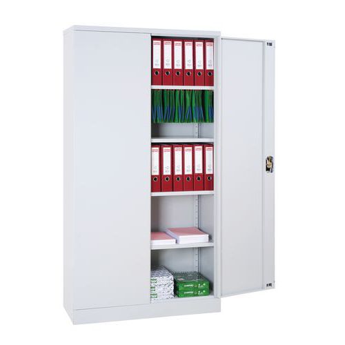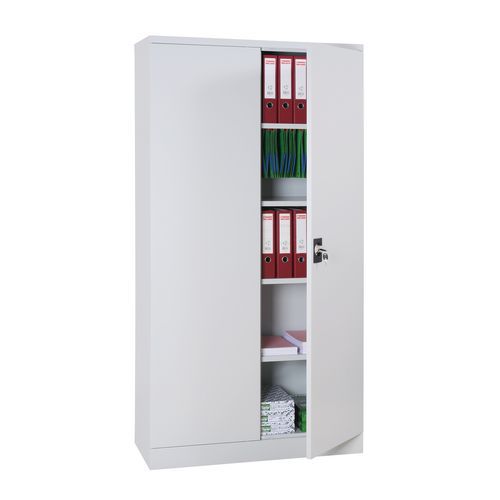 - Hegesztett irattároló szekrény iratlefűzőkhöz vagy felakasztható A4-es mappákhoz. Merevített szárnyas ajtók műanyag ütközőkkel. Állítható magasságú polcok. Ronis biztonsági zár hengerbetéttel, két kulccsal.