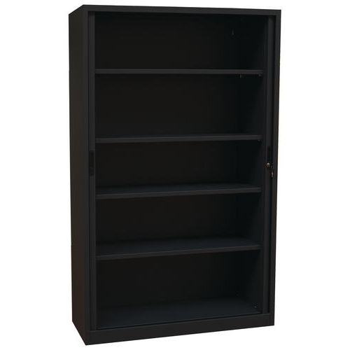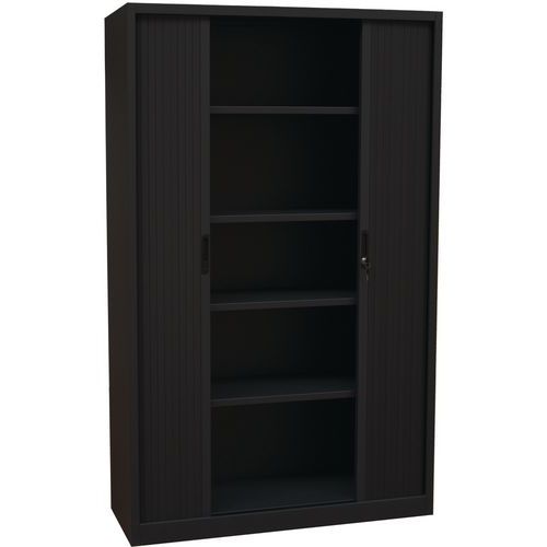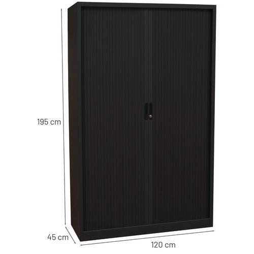 Fém irattároló szekrény rolóval, 4 polc, 195 x 120 x 45 cm, fekete