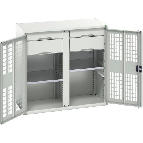 Bott Verso fém karbantartó szekrény, drótajtó, 100 x 105 x 55 cm, 2 polc, 4 fiók, szürke-szürke Bott Verso fém karbantartó szekrény, drótajtó, 100 x 105 x 55 cm, 2 polc, 4 fiók, szürke-szürke