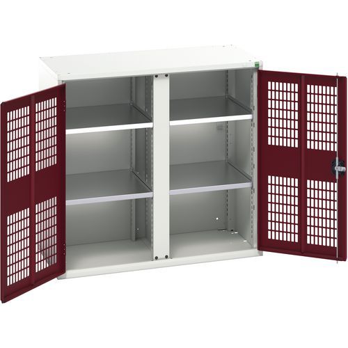 Bott Verso fém karbantartó szekrény, drótajtó, 100 x 105 x 55 cm, 4 polc, szürke-piros Bott Verso fém karbantartó szekrény, drótajtó, 100 x 105 x 55 cm, 4 polc, szürke-piros