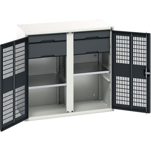 Bott Verso fém karbantartó szekrény, drótajtó, 100 x 105 x 55 cm, 2 polc, 4 fiók, szürke-antracit Bott Verso fém karbantartó szekrény, drótajtó, 100 x 105 x 55 cm, 2 polc, 4 fiók, szürke-antracit