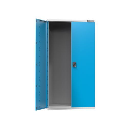 A fém szerkezetű szekrény szerszámok, eszközök és munkahelyi anyagok tárolására szolgál. A műhelyszekrények háromkaros, hengerzárral felszerelt zárszerkezettel zárhatók. A fémszekrényeket felborulás ellen rögzíteni kell a falhoz vagy a padlóhoz. A fémszekrények ajtónyílási szöge 180 °. Polcok és fiókok nélkül (nem tartozékok). A szerszámos szekrény tömege 72 kg.