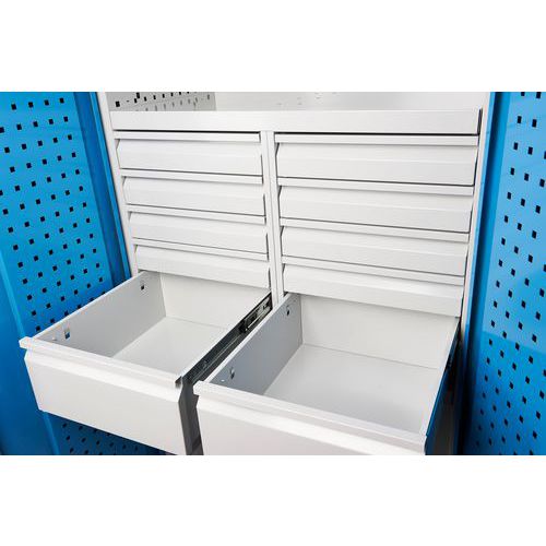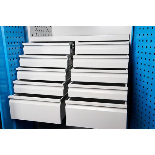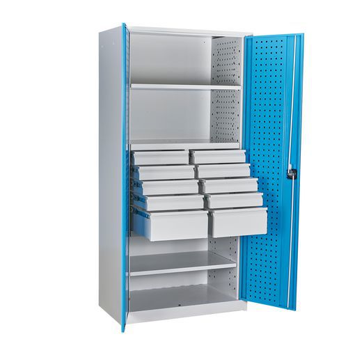 | Termék neve | Fém műhelyszekrény, 195 x 95 x 50 cm, 2 polc, 10 fiók |