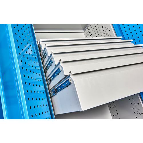 Termék neve Fém műhelyszekrény, 195 x 95 x 50 cm, 2 polc, 5 fiók