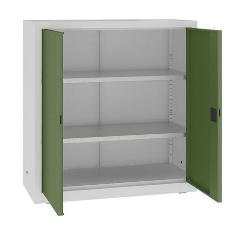Fém műhelyszekrény, 104 x 100 x 43,5 cm, 2 polc, szürke/zöld Fém műhelyszekrény, 104 x 100 x 43,5 cm, 2 polc, szürke/zöld