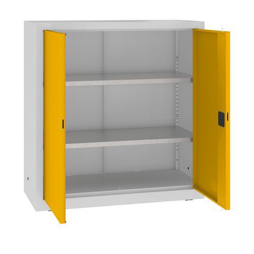 Fém műhelyszekrény, 104 x 100 x 43,5 cm, 2 polc, szürke/sárga Fém műhelyszekrény, 104 x 100 x 43,5 cm, 2 polc, szürke/sárga