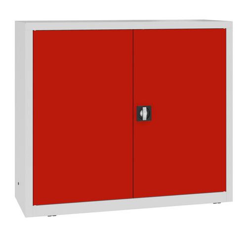 Fém műhelyszekrény, 104 x 120 x 43,5 cm, 2 polc, szürke/piros Fém műhelyszekrény, 104 x 120 x 43,5 cm, 2 polc, szürke/piros