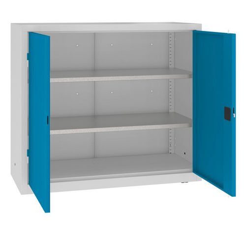 Fém műhelyszekrény, 104 x 120 x 50 cm, 2 polc, szürke/világoskék Fém műhelyszekrény, 104 x 120 x 50 cm, 2 polc, szürke/világoskék