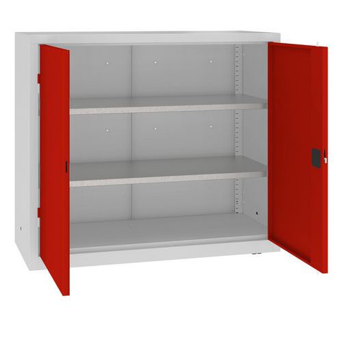 Fém műhelyszekrény, 104 x 120 x 50 cm, 2 polc, szürke/piros Fém műhelyszekrény, 104 x 120 x 50 cm, 2 polc, szürke/piros