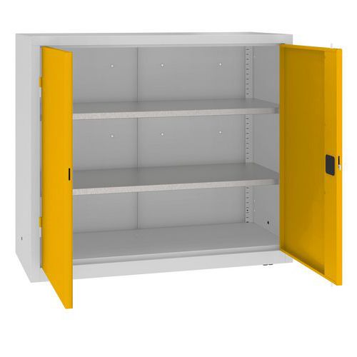 Fém műhelyszekrény, 104 x 120 x 50 cm, 2 polc, szürke/sárga Fém műhelyszekrény, 104 x 120 x 50 cm, 2 polc, szürke/sárga