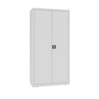 Magas fém szekrények négy polccal, alkalmasak professzionális használatra beltéri száraz és szellőző helyiségekben. Monolit hegesztett acél szerkezet. 1 mm nagy szilárdságot biztosít. Lengőajtó RONIS hárompontos zárral (2 kulccsal szállítjuk). Belülről állítható szintező lábak. Csúszkák a szekrény könnyű mozgatásához és a padló védelméhez. A nagy biztonság érdekében a falhoz rögzíthető. Festés előtt a szekrényeket cirkónium réteggel vonják be, amely védi őket a korróziótól és növeli a festék tapadását. A szekrények a PN-EN 13501-1:2019-02 szabvány szerint A2-s1, d0 tűzvédelmi besorolással vannak bevonva. ISO:9001 és ISO:14001 szabványok szerint gyártva.