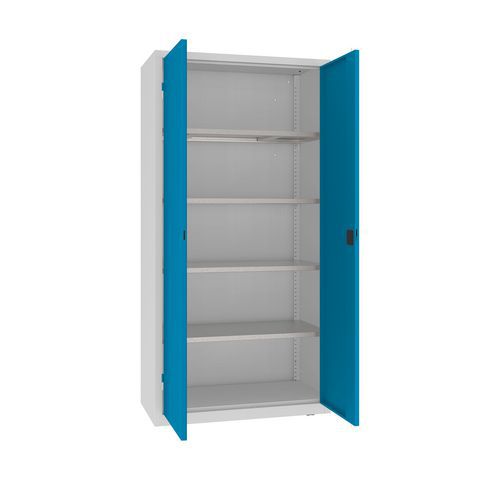 Fém műhelyszekrény, 199 x 100 x 50 cm, 4 polc, szürke/világosszürke kék Fém műhelyszekrény, 199 x 100 x 50 cm, 4 polc, szürke/világosszürke kék