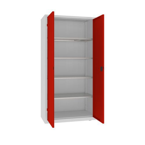 Fém műhelyszekrény, 199 x 100 x 50 cm, 4 polc, szürke/piros Fém műhelyszekrény, 199 x 100 x 50 cm, 4 polc, szürke/piros