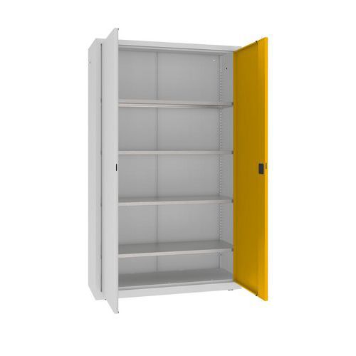 Fém műhelyszekrény, 199 x 120 x 43,5 cm, 4 polc, szürke/sárga Fém műhelyszekrény, 199 x 120 x 43,5 cm, 4 polc, szürke/sárga
