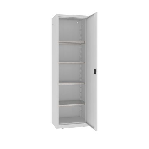Szerszámok és műhelykiegészítők tárolására alkalmas könnyű hegesztett szekrények sora. A szekrények száraz és szellőztetett beltéri terekbe valók, professzionális és félprofesszionális használatra. Acéllemez vastagságból készült. 0,7 mm. Négy, 25 mm-es lépésekben állítható polccal felszerelve. Zárás RONIS kétpontos zárral. Belülről állítható szintező lábak. A nagy biztonság érdekében a falhoz rögzíthető. Festés előtt a szekrényeket cirkónium réteggel vonják be, amely védi őket a korróziótól és növeli a festék tapadását. A szekrények a PN-EN 13501-1:2019-02 szabvány szerint A2-s1, d0 tűzvédelmi besorolással vannak bevonva. ISO:9001 és ISO:14001 szabványok szerint gyártva. Max. terhelés (kg) : 325 kg Max. polcterhelés (kg) : 65 kg